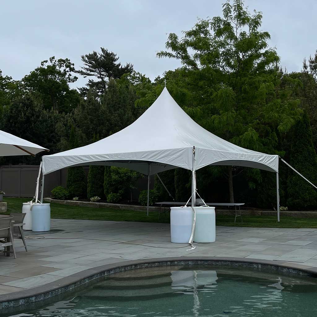 Important: Tents secured with water barrels cannot be installed with sidewalls. This is part of our safety policy and helps prevent wind hazards.